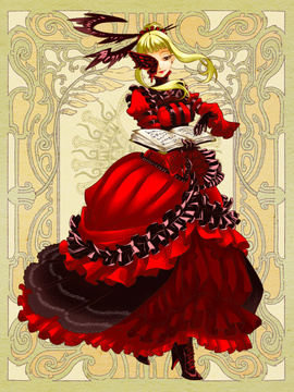 ◇竜の子を自称する出自等一切不明の吸血鬼モドキ。その老女の如きしわがれ声で語る言葉の多くは嘘偽り、嘘で自身を飾るロクデナシ。◆クラウディオ・ヴラディスラウス・ドラキュリアを自称するが、クラウディオは男性名であり本名ではない。◇超越者然とした振舞いをするが、その正体は引き籠りの不登校児。重度のコミュ症で仮面がないと喋れもせず、話す時は目を逸らす癖がある。 |