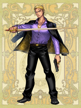 身体:ワイルドな顔立ち 髪型:オールバック 傷跡:右眼を通る傷 性質:迫力がある 実は:勤勉 |